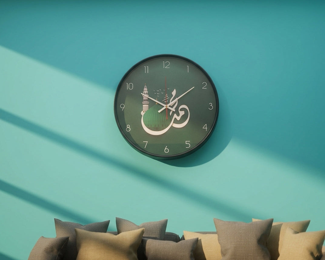 Ayatul Kursi Wall Clock – Emerald Gold Islamic Design | KLOK