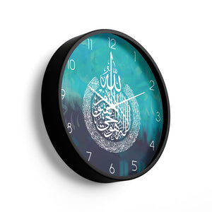 Experience spiritual calm with the Islamic Wall Clock – Ayatul Kursi Aqua Blue Modern Design by KLOK.(Model ISL-0030)