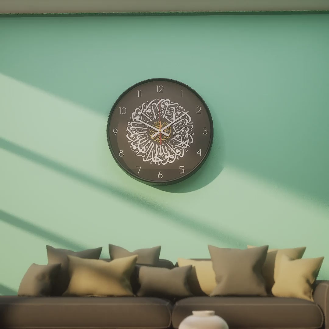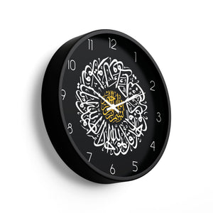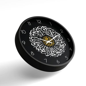Islamic Wall Clock – Sura Ikhlas Black & Gold Arabic Calligraphy